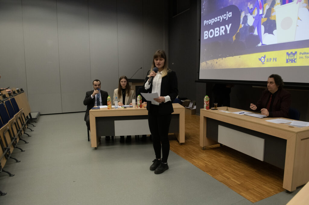 Wszystkie debaty odbyły się Działowni na Politechnice Krakowskiej. Oceniający je eksperci – wywodzący się ze środowisk biznesowych, społecznych i instytucjonalnych – analizowali strukturę wypowiedzi, jakość argumentacji oraz umiejętność reagowania na kontrargumenty. Wśród nich znalazł się dr inż. Damian Grela z WIEiK, co doskonale pokazuje zaangażowanie naszego Wydziału w kształtowanie kompetencji studentów wykraczających poza mury sal wykładowych.