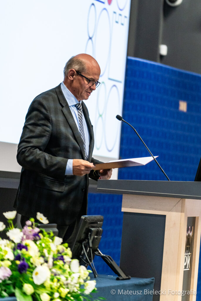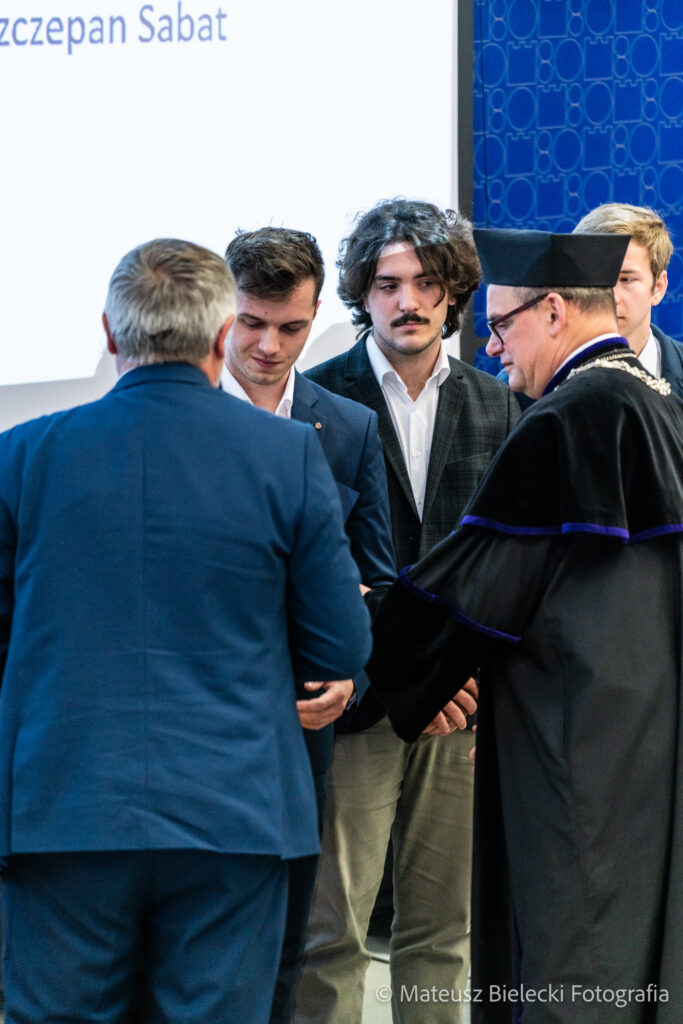 W dalszej części uroczystości wręczono nagrody Uczelnianej Sesji Kół Naukowych oraz rozstrzygnięto konkurs na Najlepszego Dydaktyka 2024 roku.