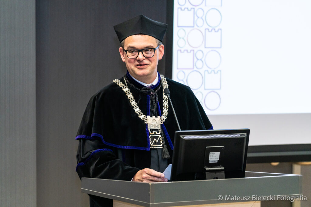 Pan Dziekan dr hab. inż. Maciej Sułowicz, prof. PK oficjalnie rozpoczął rok akademicki 2025/26. W swoim przemówieniu przypomniał historię naszego Wydziału, który już od 50 lat kształci inżynierów, a także wyraził nadzieję na dalszy dynamiczny rozwój WIEiK i jego znaczący wkład w historię Politechniki Krakowskiej. Gościem honorowym uroczystości była Pani dr hab. inż. Katarzyna Bizon, prof. PK – Prorektor ds. kształcenia i współpracy z zagranicą.