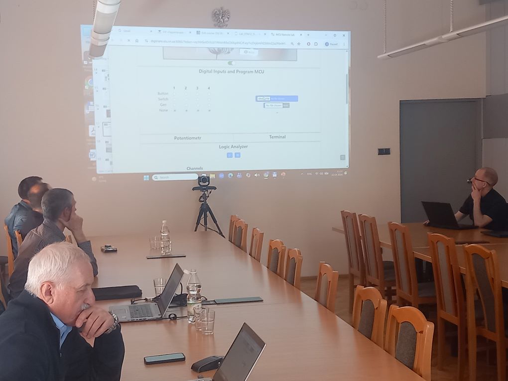 Dnia 22 IV odbyło się seminarium, na którym Prof. Volodymyr Kazymyr zaprezentował tematy dydaktyczne i naukowe. Omówiono m.in. wdrożoną aplikację do zdalnej nauki programowania mikrokontrolerów oraz sterowników programowalnych. W części naukowej przedstawiono doświadczenia w zakresie programowania roju dronów na potrzeby ochrony infrastruktury krytycznej.